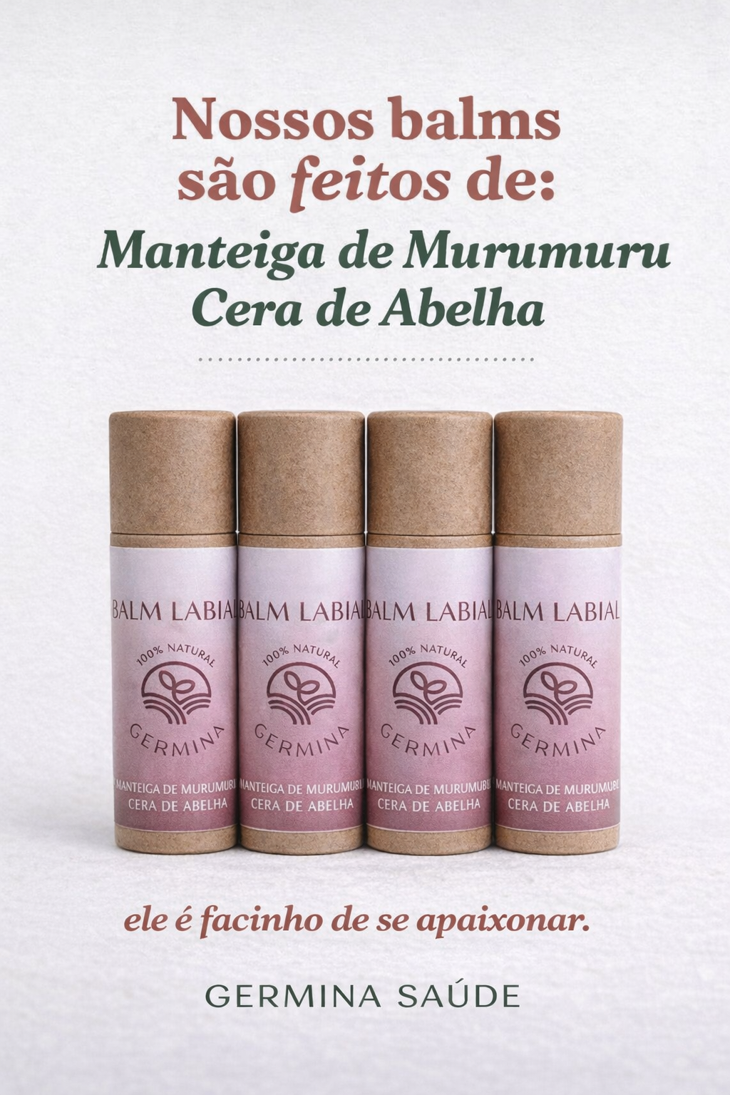 Nossos balms são feitos apenas com ingredientes naturais, vindos direto da natureza 🌱