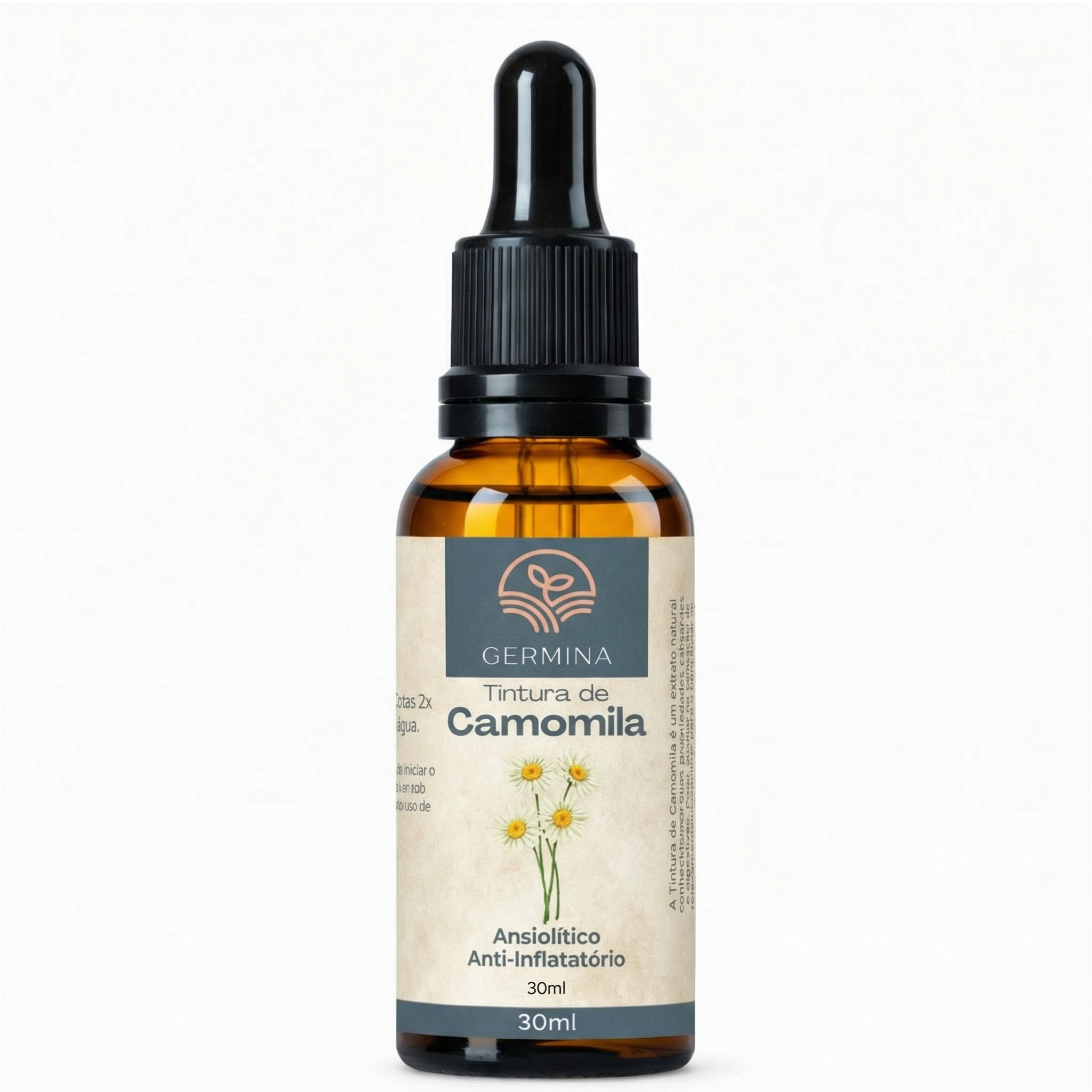 A Tintura de Camomila 100% Natural da Germina é uma solução concentrada, desenvolvida para quem busca alívio do estresse diário e conforto para o corpo. Conhecida por suas propriedades calmantes e terapêuticas, a camomila (Matricaria chamomilla) é uma das plantas medicinais mais estudadas e utilizadas ao redor do mundo, e nossa tintura captura sua essência para oferecer bem-estar em cada gota.